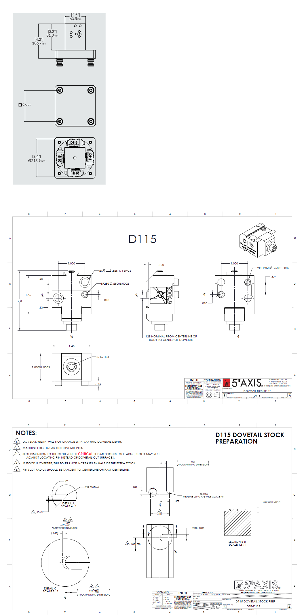 D115 & R96-D115T41 Medium Dovetail Fixture & Mini Tomstone